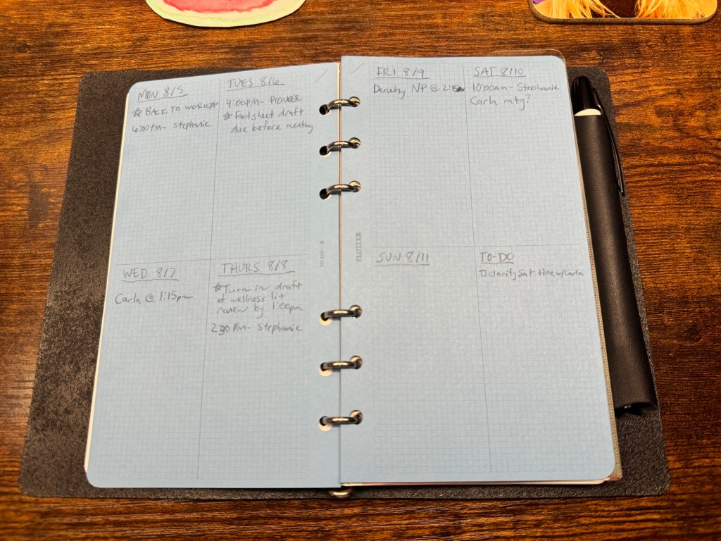 I like the project planner inserts most. I’m using three right now: one for work, one for my school practicum, and one for therapy. I like to doodle during therapy and frequently make notes throughout the week to bring back to my therapist for our next session.